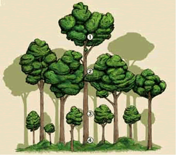 In a hardwood forest, trees compete for the water and sunlight that come through the forest canopy – the leafy “roof” over the forest floor. Single-tree selection reduces this competition. Carefully removing individual trees creates openings in the canopy, allowing more precipitation, sunlight and nutrients to reach the forest floor. No longer suppressed by larger trees, seedlings are free to grow vigorously and saplings sprout out of the tree stumps. A few years later, the forester returns to the site to remove the least desirable saplings, allowing the hardiest to grow.